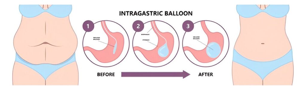Mide balonu, endoskopik bir prosedürle mideye yerleştirilen, genellikle silikon veya başka malzemelerden yapılan bir balondur. Mide balonu, mideyi fiziksel olarak küçülterek kişinin daha hızlı doygunluk hissetmesini sağlar. Bu sayede kişi daha küçük porsiyonlarla doyabilir ve yemek yeme alışkanlıklarını değiştirerek kilo kaybı sağlar.